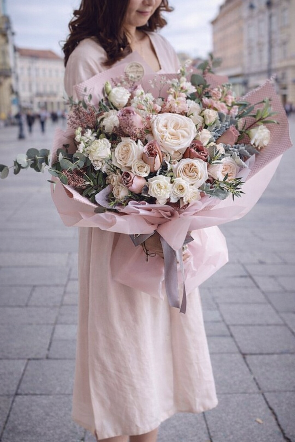 Raskošni buket ružičastih i ljubičastih ruža, obogaćen prozračnim bijelim detaljima, odiše profinjenošću i bezvremenskom elegancijom. Savršen izbor kada želite ostaviti snažan, a istovremeno nježan dojam.