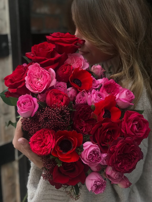 Buket Gabi, rapsodija je ružičasto-crvenih tonova cvijeća. Kao naramak ubranih cvjetova, umotanih u šuškave papire, ovaj buket zaista ostavlja bez daha.