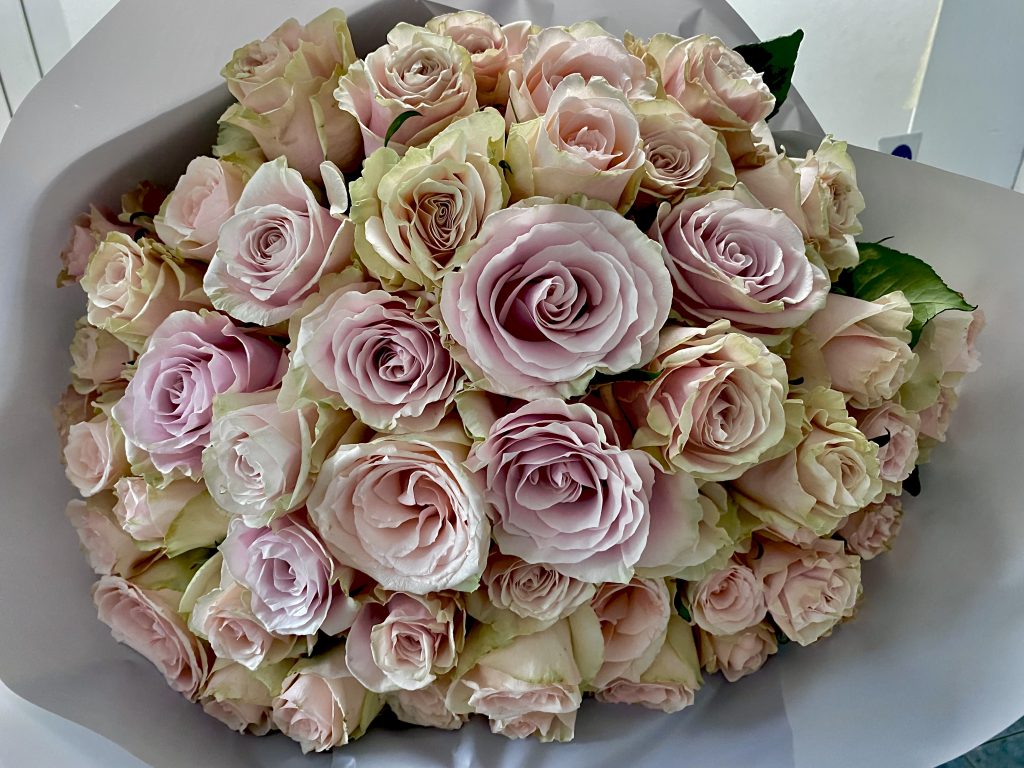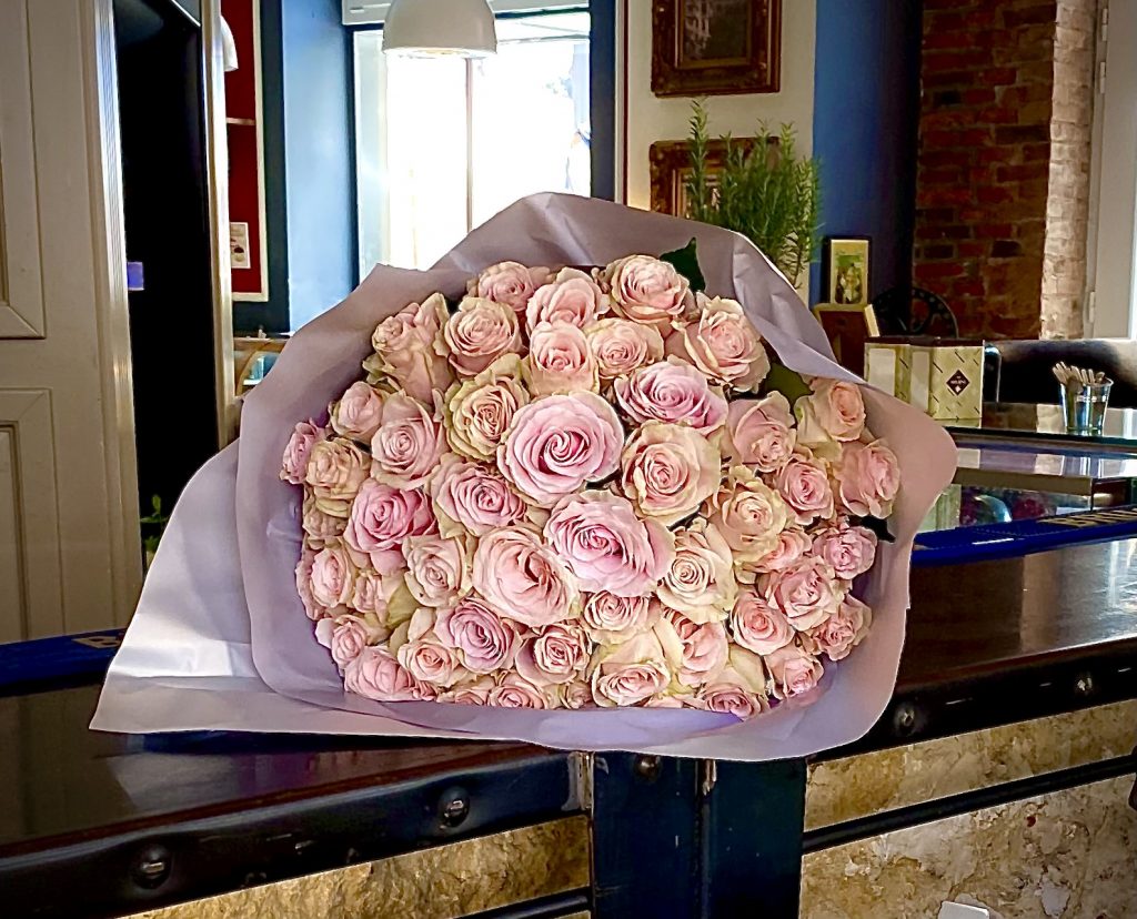 Buket Marija – buket je ruža u pastelnim tonovima. Njegova profinjenost i elegancija ostavlja bez daha.. Umotan u fini papir, vezan satenskom trakom, cvijeće dolazi sa Vašom personaliziranom porukom.