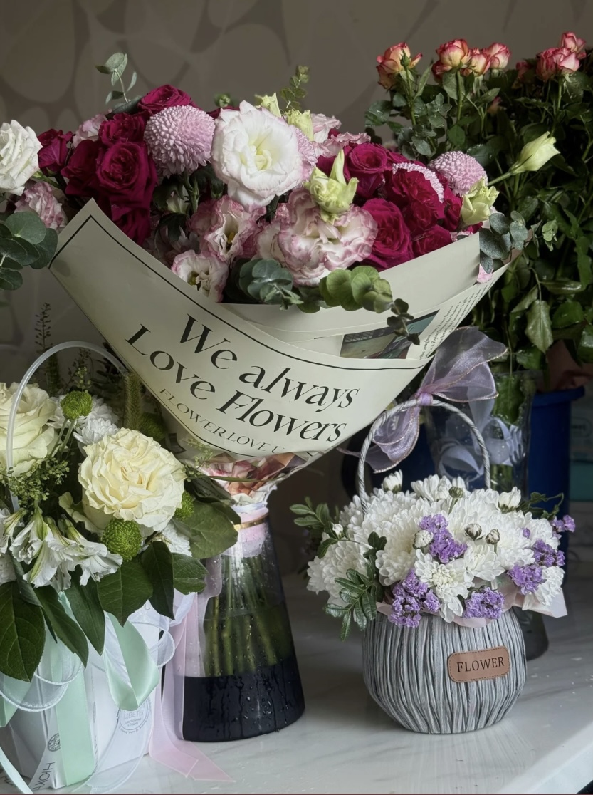 Buket se mijenja prema sezoni, pa svaki tjedan donosi novu paletu boja i mirisa – tulipani i frezije u proljeće, mirisne ruže ljeti, dalije i druga sezonska cvijeća kroz ostatak godine.