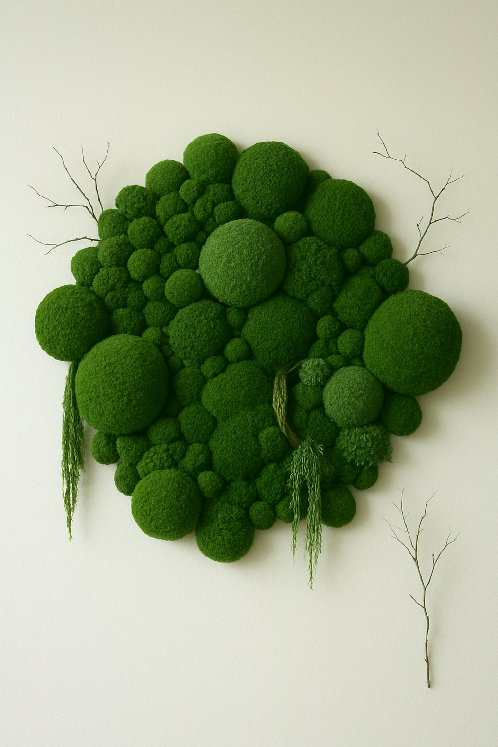 Polarna (zečja) mahovina — prirodni dekor s efektom trodimenzionalne teksture. Svaki njezin mekani, pahuljasti jastučić stvara dojam 3D površine koja unosi dubinu i luksuz u prostor.