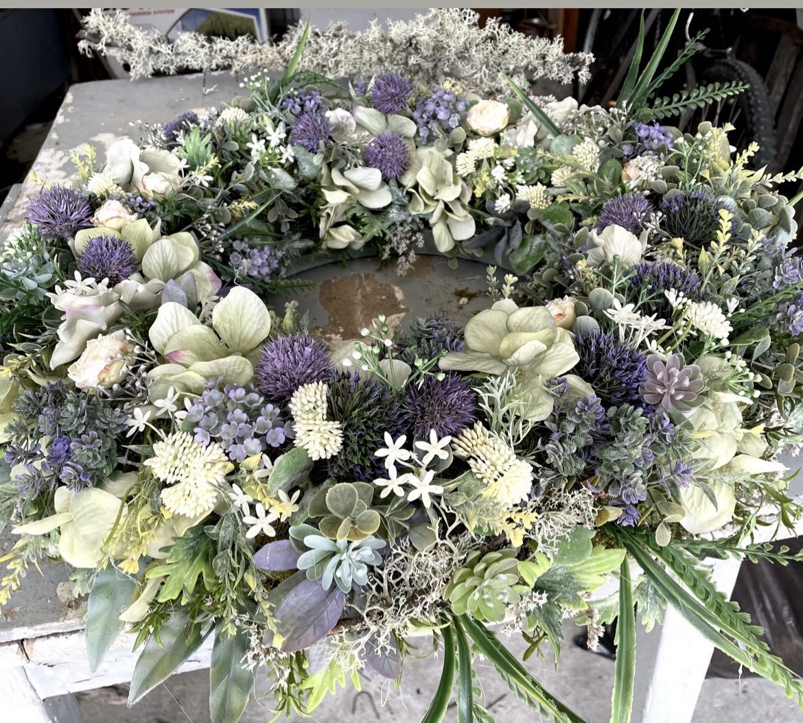 Vijenac Lavandul, cvjetni je vijenac od umjetnog, pažljivo biranog cvijeća. Sukulenti i zeleni listovi uz dodatak kojeg bijelog cvijeta, daju dojam profinjenosti. Izvrstan odabir za interijer, ali i za groblje, jer boje ostaju postojane.