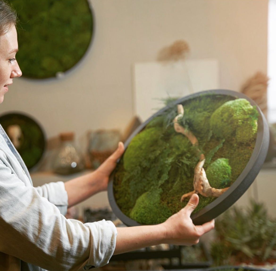 Krugovi od stabilizirane mahovine unose dah prirode u svaki prostor. Ova živa umjetnost ne traži zalijevanje ni posebnu njegu, a ima moć umiriti, oplemeniti i oplemeniti ambijent svojom mekoćom, bojom i tišinom. Svaki krug je ručno izrađen i jedinstven – poput malog zelenog svemira na zidu. Idealni su za dom, ured, studio ili poklon osobi kojoj želiš darovati prirodu koja traje godinama.